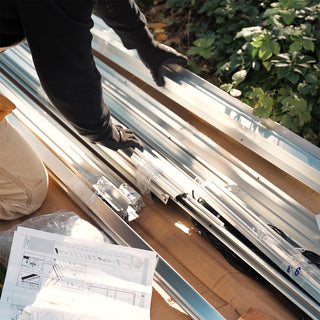 Bestiller du et drivhus med glasbeklædning (sikkerhedsglas, gartnerglas eller byzanthijnglas)? Så bliver din ordre afsendt på en stor, robust palle. Stellet, glasset og alt tilbehør bliver pænt pakket sammen.