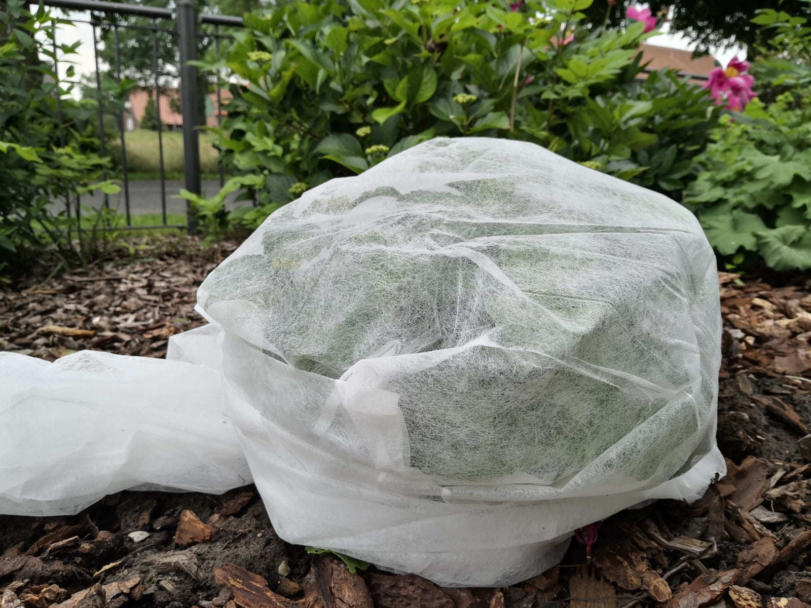Læg dugen løst over dine planter, og fastgør kanterne med jord eller pløkker. Takket være det lette materiale kan planterne uden besvær vokse op under den. Dugen kan klippes til i den ønskede størrelse og bruges flere gange i løbet af sæsonen.