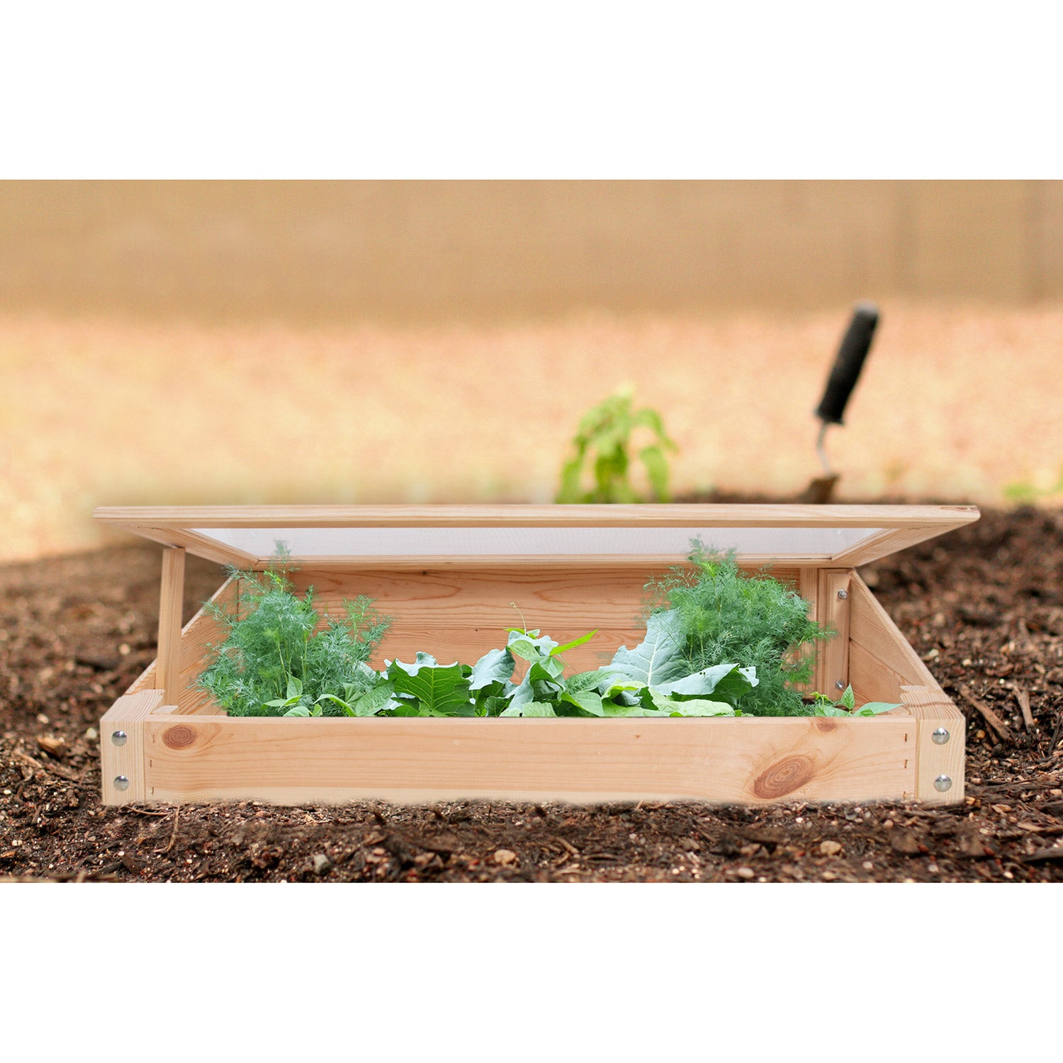 Dette koldbænk-top til dyrkningsborde beskytter planterne og forlænger dyrkningssæsonen. Denne koldbænk kan placeres direkte på jorden. Udstyret med polycarbonatvinduer, der spreder lyset, så planterne ikke (hurtigt) bliver svedet.
