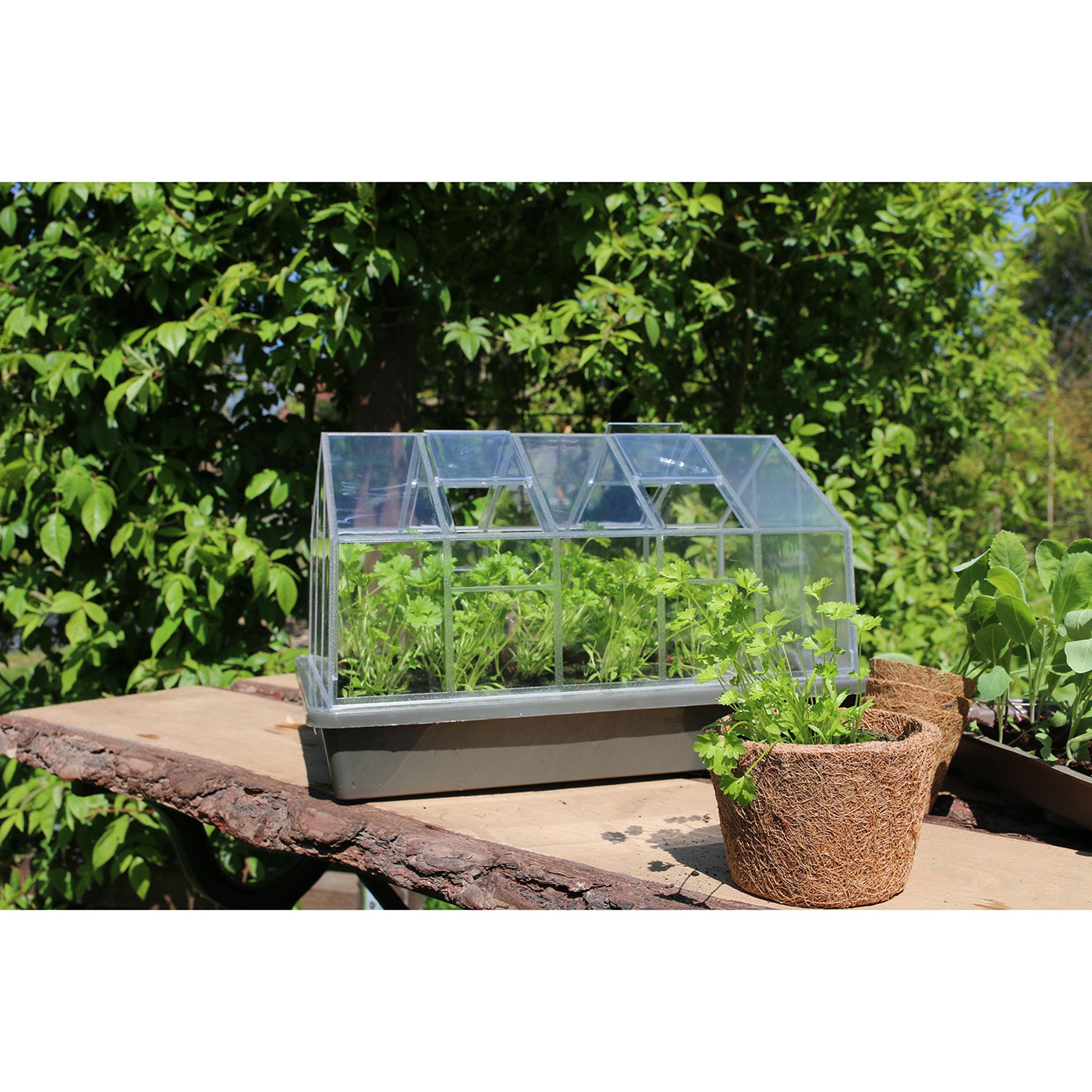En ny type minidrivhus. Det Klassiske minidrivhus har endda små vinduer.