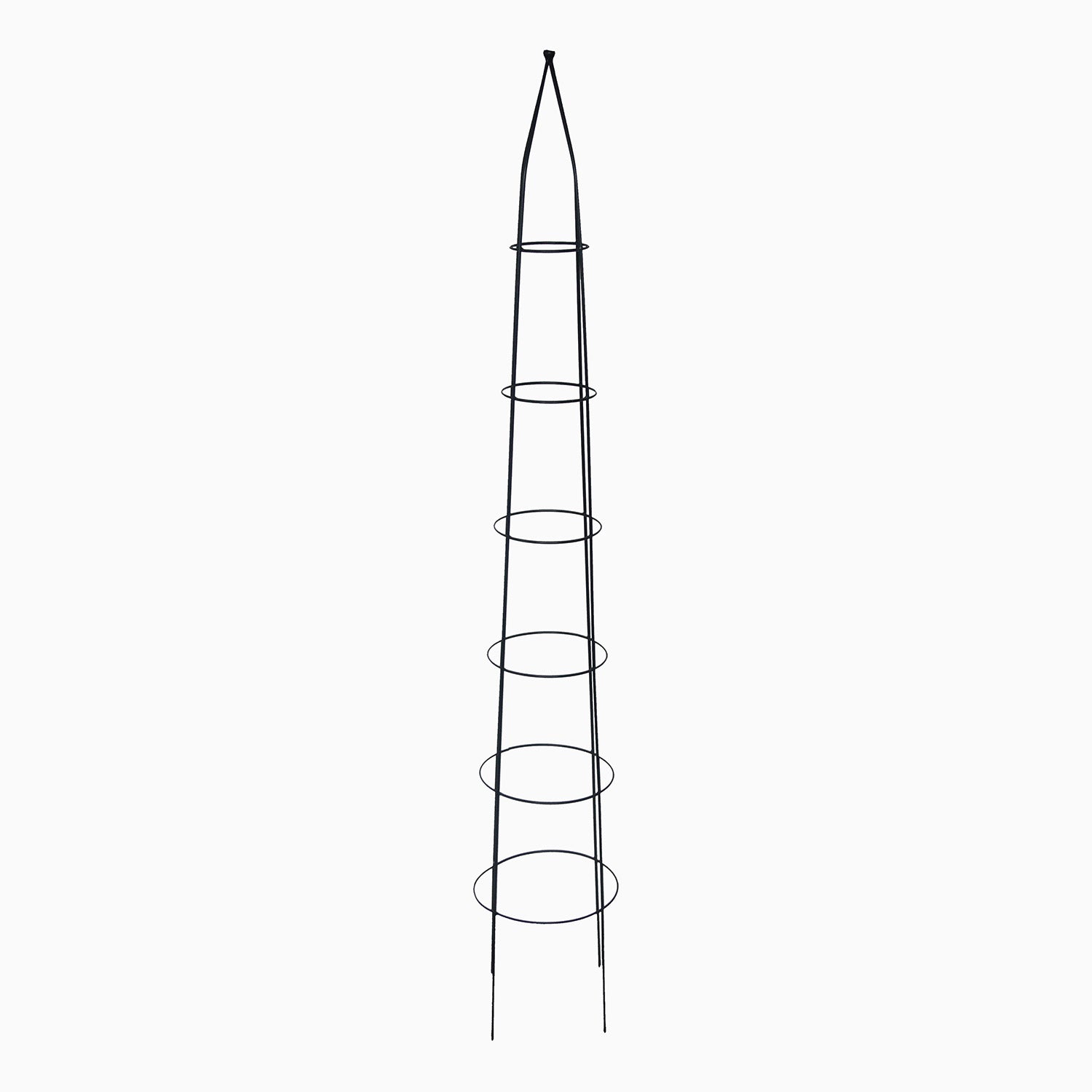 Plantestøtten er fremstillet af sortlakeret metal og beregnet til at støtte klatrende eller buskede planter, såsom tomater, bønner eller prydplanter med tunge toppe. Takket være den robuste konstruktion giver denne støtte både stabilitet og æstetik i køkkenhaven eller (pryd)haven. Dette sæt består af tre plantestøtter i den ønskede størrelse.
