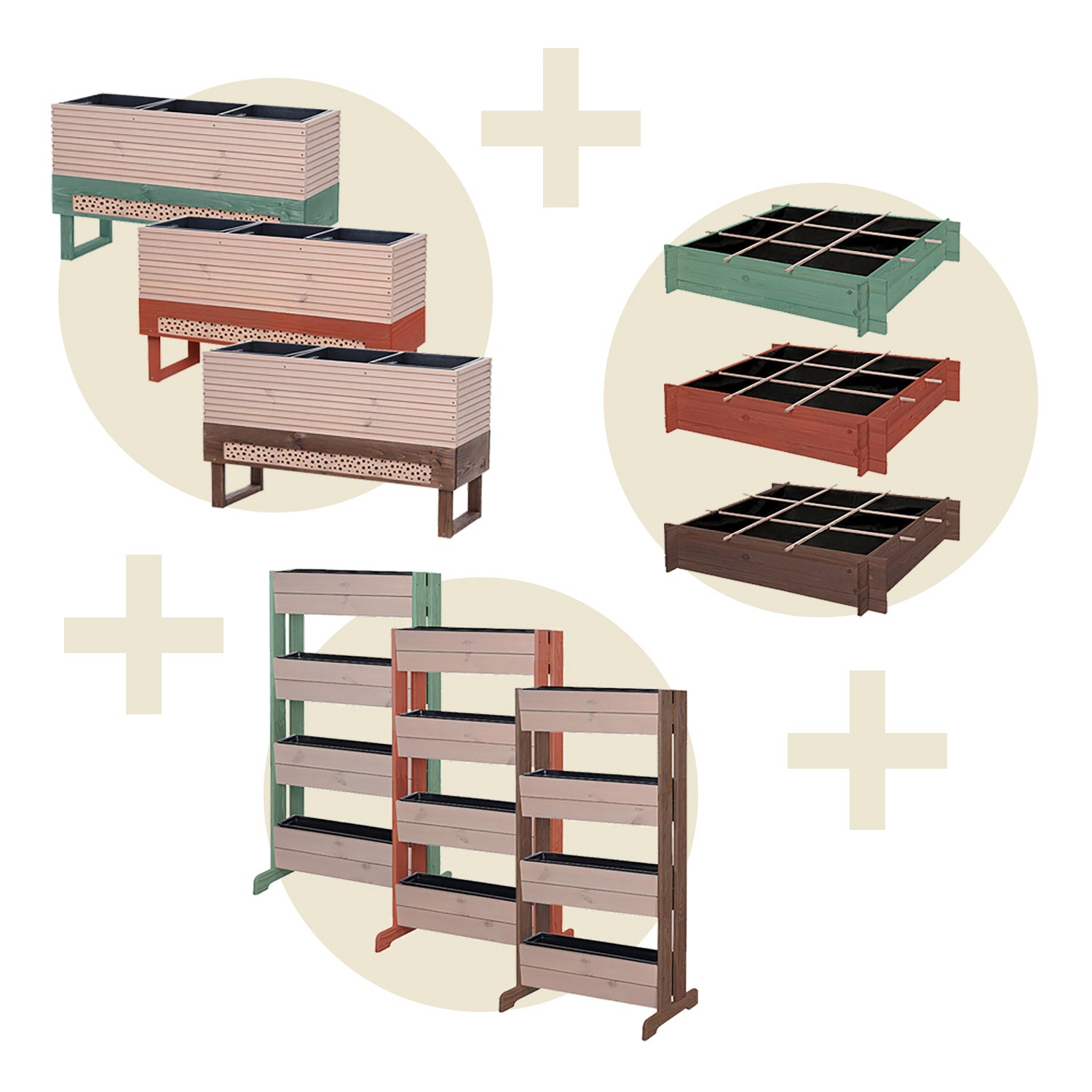 Mix & Match din egen Køkkenhave. Perfekt til den begyndende køkkenhaveentusiast. Med dette sæt dyrker du en stor variation af afgrøder. I dyrkningsbordet er der plads til 3 store planter, den vertikale bakke er ideel til flere krydderurter eller jordbær. Køkkenhavekassen på en kvadratmeter kan du opdele i 9 felter. Tilsammen giver det en komplet Køkkenhave, som du kan bruge på mange måder.
