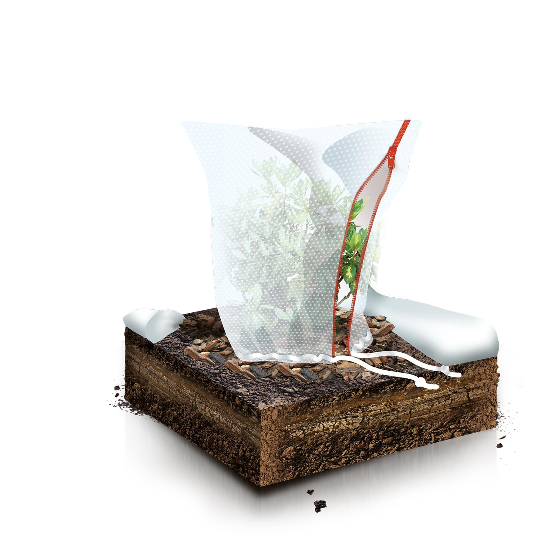 Det er nemt at bruge Vorstbeschermer Hoes: Træk overtrækket over planten, og stram snoren i bunden for at holde overtrækket på plads. Det sikrer, at planten er helt dækket og beskyttet mod vejrliget. Overtrækket er let og åndbart, hvilket forebygger kondensdannelse.