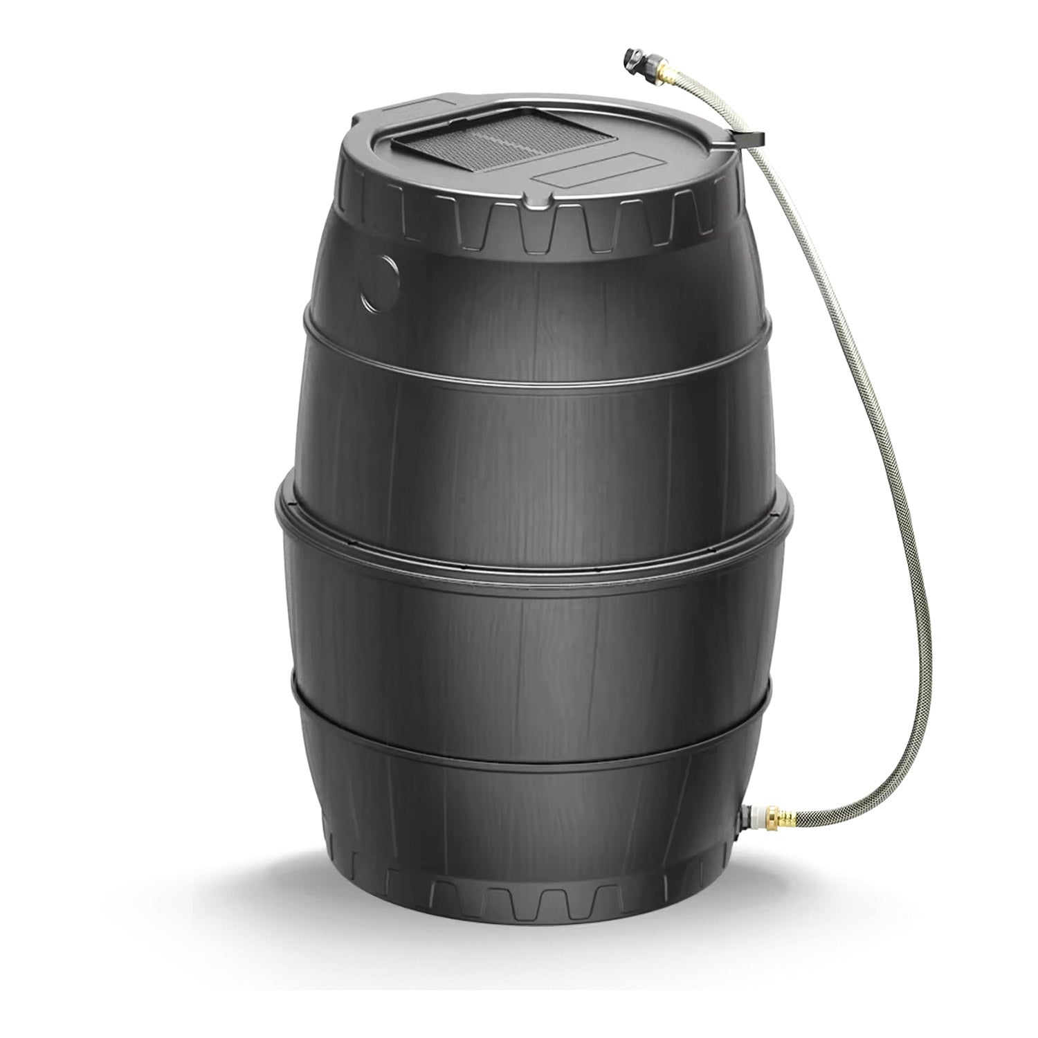 De regenton wordt geleverd met een 1x een voet, 1x vuilfilter, 1x afsluitkraan en 1x een tuinslang van 1,10meter lang.