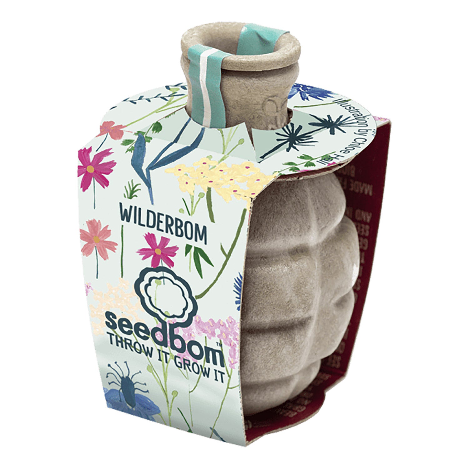 De Wilder Zaadbom is een compacte bloemenbom gevuld met een kleurrijke mix van zaden. Hij is bedoeld om eenvoudig kale stukjes grond, tuinen of bloembakken om te toveren tot bloeiende oases vol leven. De zaadbom is gemaakt van natuurlijke materialen en volledig plasticvrij verpakt.